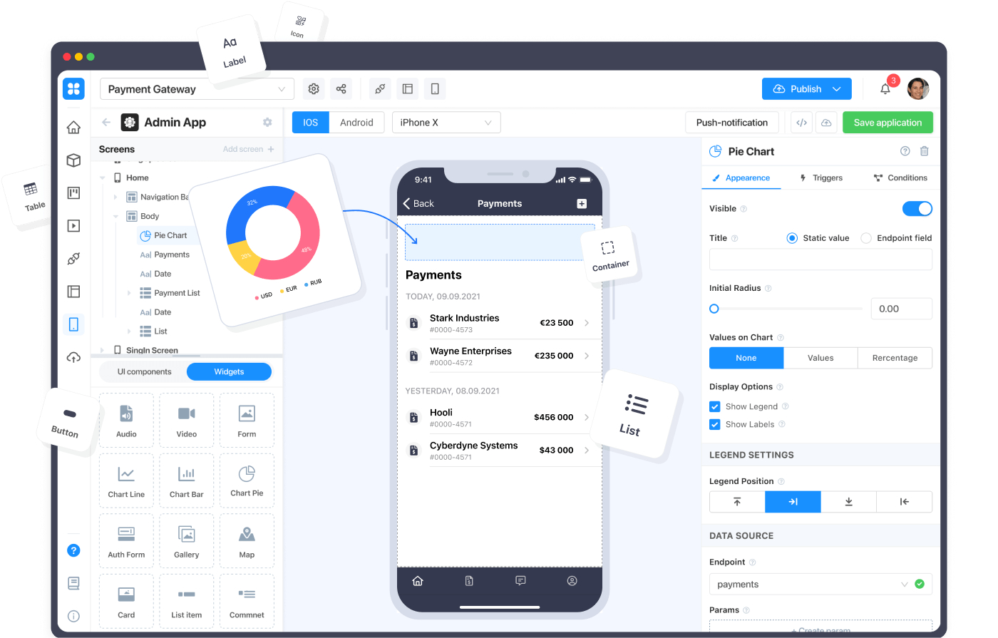 •         拖放界面设计: 直观的界面,可轻松为 Web 和移动应用程序创建用户界面。